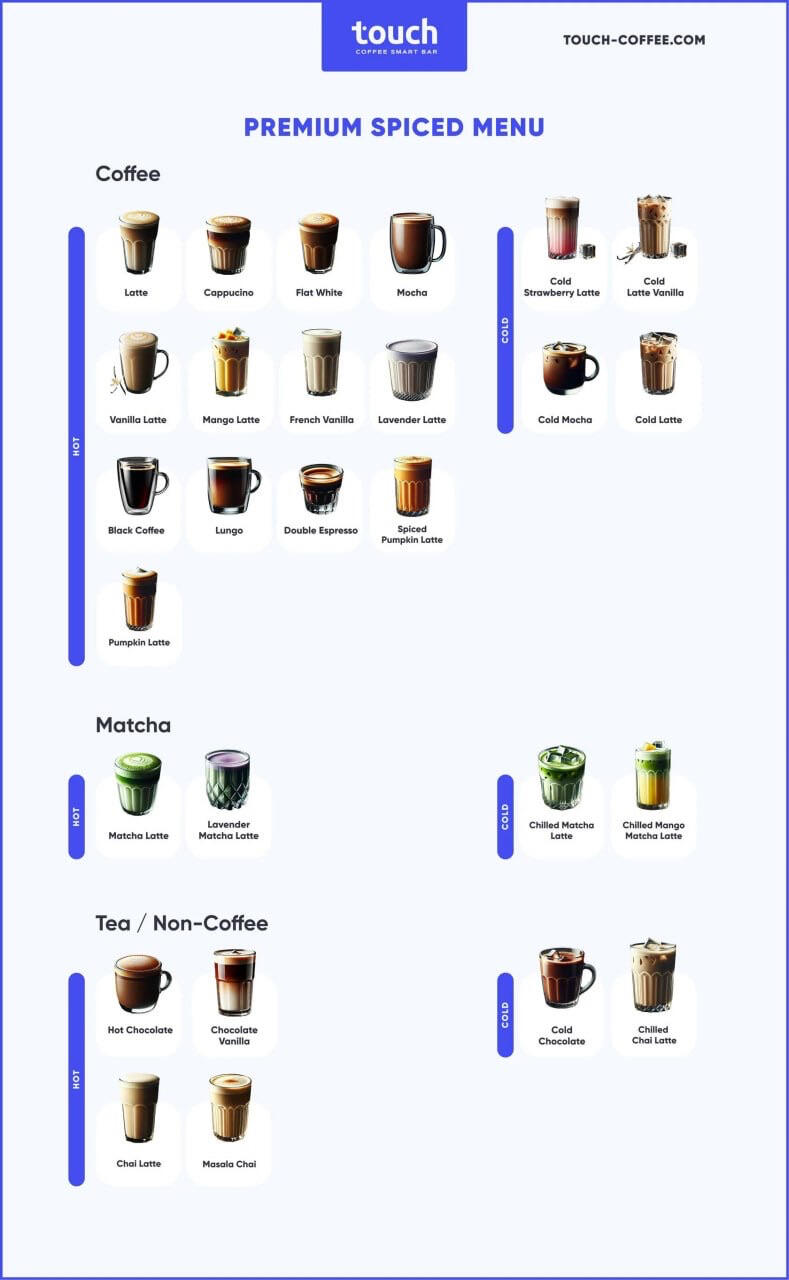 A touchscreen Beverage Bar built for modern spaces.• Espresso & specialty coffee drinks