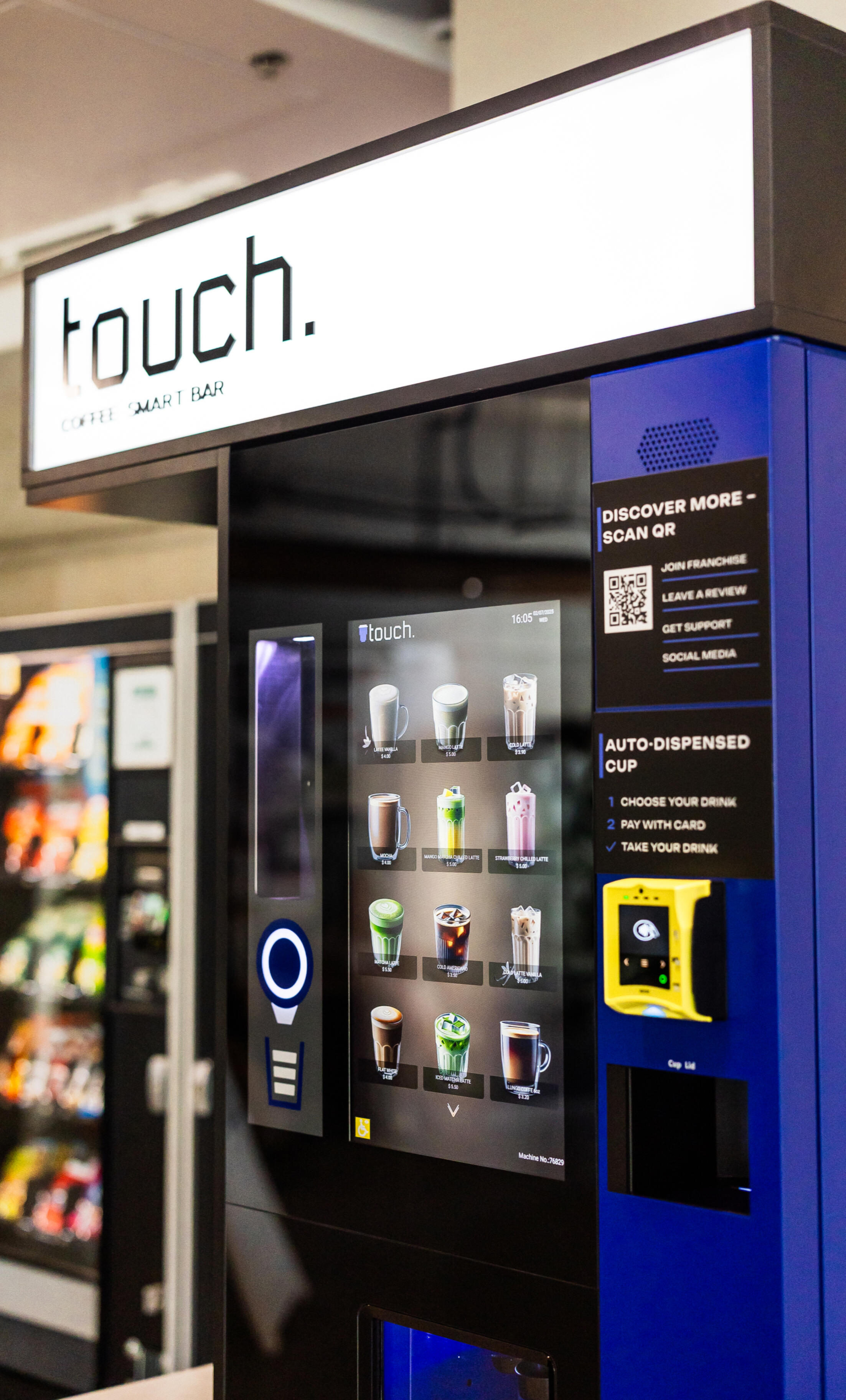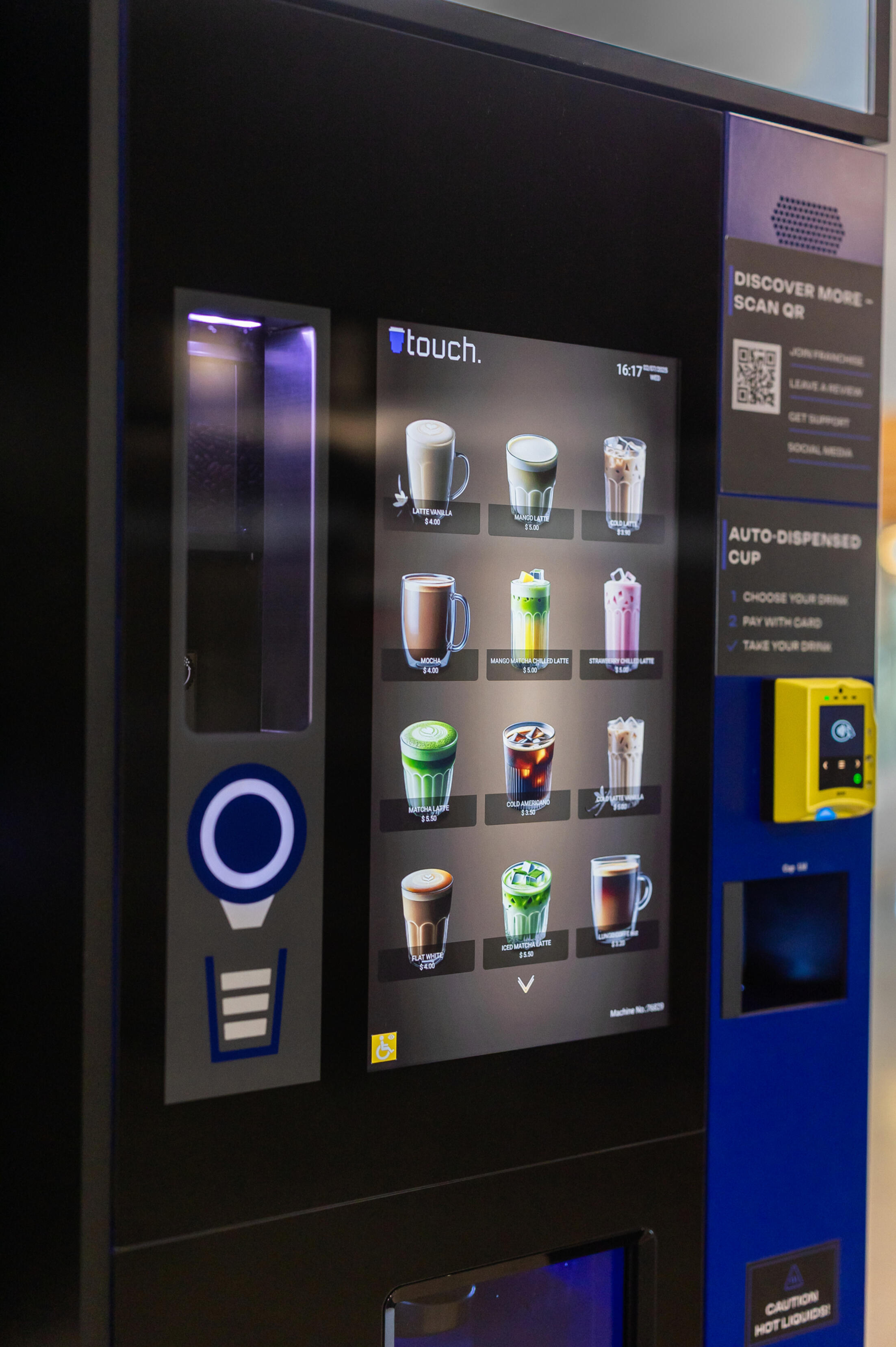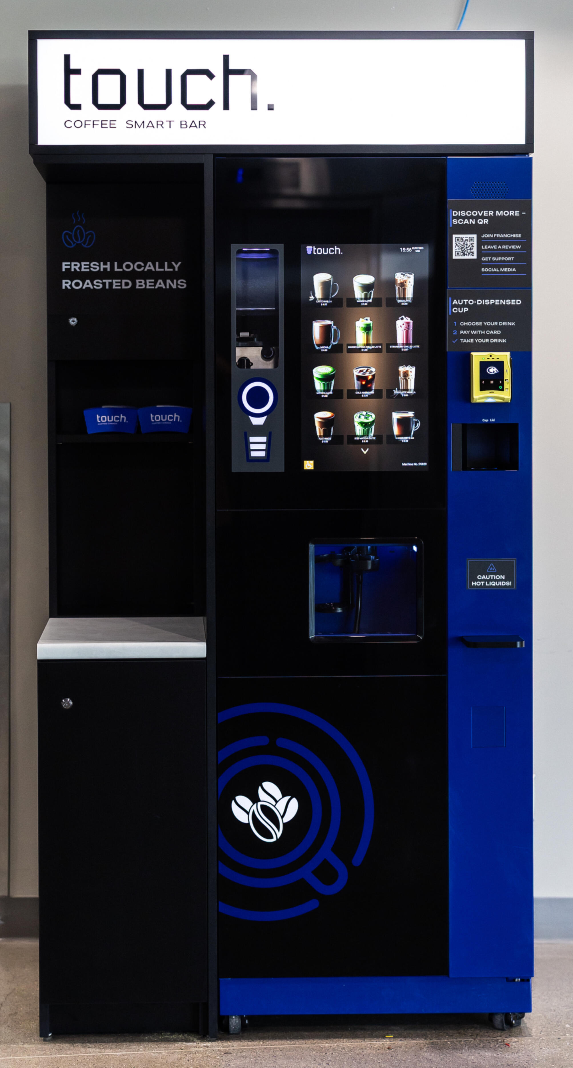 We deploy next-generation Touch Coffee Smart Bar systems across Los Angeles — serving espresso, specialty drinks, smoothies, and protein shakes in a sleek,